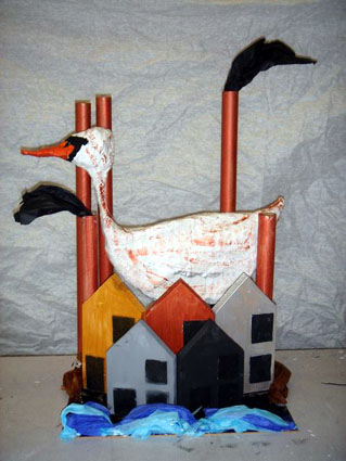 Sara Rees’ work was very well received, with initial reactions such as; ‘its amazing’, ‘hey theres a boat’ (Michelle). ‘Its like a sea house’ (Leah). ‘There’s a wooden shack on the sea complete with cat flap’(Joe). ‘ There’s no door (Catherine)’.