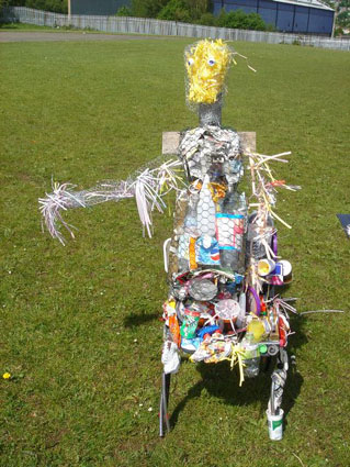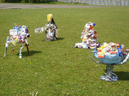 One group’s artwork contrasted two futures, a robotic hand holding a world full of litter. “We enjoyed making this as you don’t usually get to do this type of work in school”, (Rebecca, Jamie and Mike). “Creating the objects does actually make you think about the whole picture of recycling for the future”, (Emily). These statements obviously show that Sara Rees’s art piece really works. Yasmin stated that “when you litter you become the rubbish”.