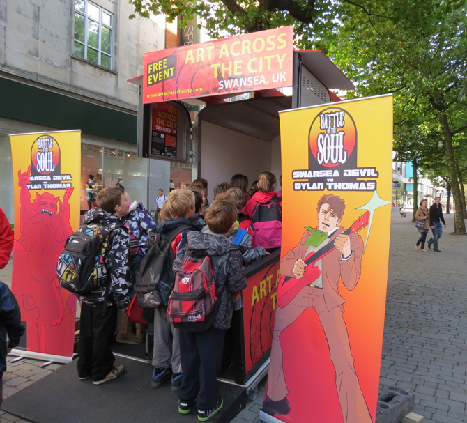 Free tours around Swansea city centre have been offered to the public as well as schools and colleges in the area. They have been an enjoyable experience for everyone involved, with participants gaining inspiration for their studies, developing different perspectives on art, and others sharing their memories of Swansea in relation to the artworks.