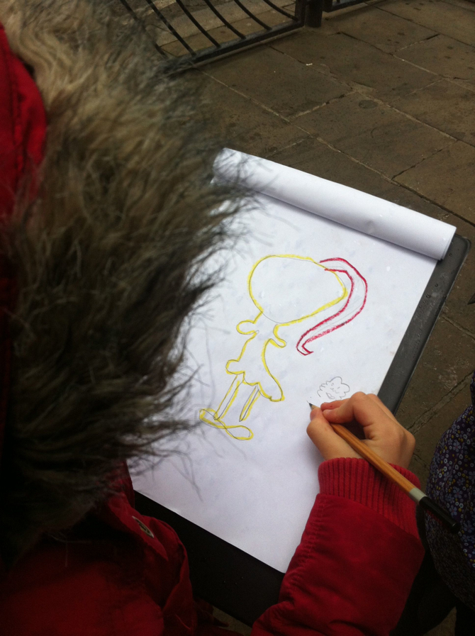 All of the children, as usual, enjoyed the playfulness of the ‘Shelters’ created by Tatham & O’Sullivan. They connected with the rainbow designs and also asked why the faces were upside down. The class made some beautiful drawings along the way in preparation for the workshop day.