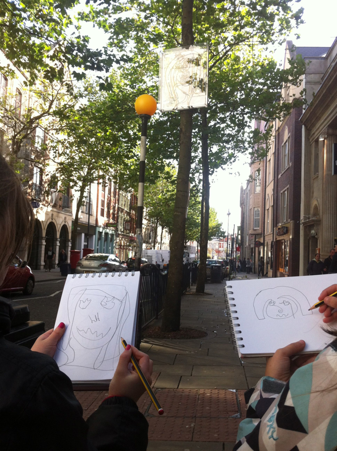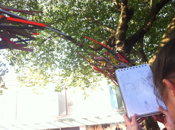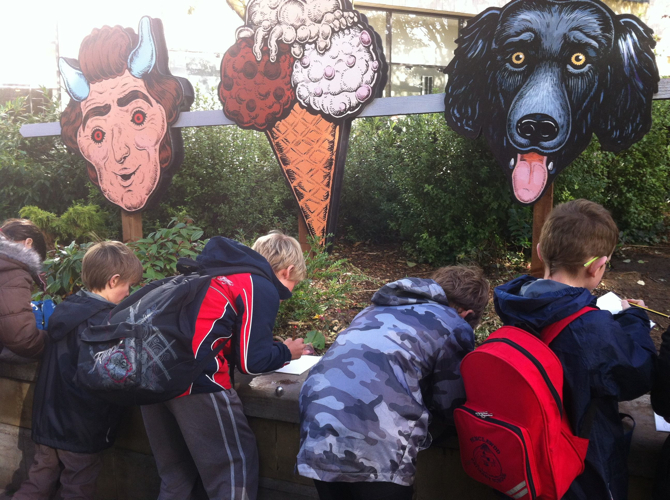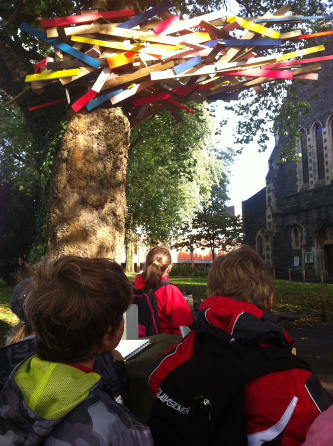 We were really lucky with the weather today as the sun shone and we were able to walk around and discuss the artworks at our leisure and the children made some great drawings in their sketchbooks relating of the Artworks.