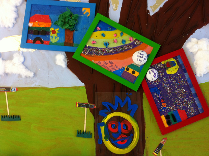 The LSA and teacher gave their full support throughout the project and this enabled the workshops to be both exciting and productive. The 8’ x 4’ collage with Locws signage, worked really well and we are all looking forward to seeing this in a prime spot situated in the foyer of the school. The class were very enthusiastic, interested and well mannered during the session and produced some great artwork.