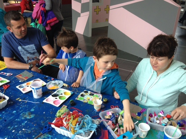 The adults were enjoying the collages and badges as much as the children.