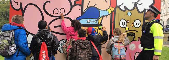 Today, Community Officer Patrick assisted us on our tour which was a real treat. As I was explaining about the project Art across the city appeared on the Big Screen in Castle square and I was able to show the group the varied art on show for 2014.